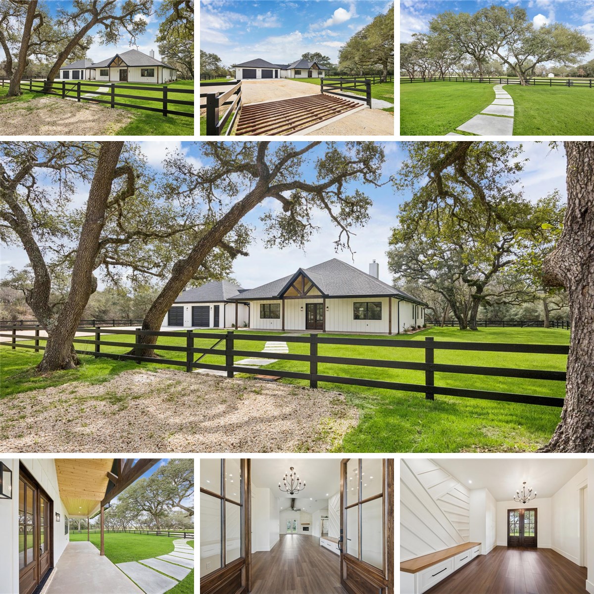 Nestled on 25 private acres at the end of a paved county road, this exceptional property offers peaceful country living surrounded by mature oak trees, abundant wildlife, a newly built pond, irrigation system, and hydro-seeded grass. The 3 bed, 3 bath home features 3,155 square feet of living space plus a 1,225-square-foot oversized garage (4,380 square feet total slab). Exterior highlights include soffit lighting, a whole-house Generac generator, and a 500-gallon in-ground propane tank, and on-demand gas water heater. Inside, you’ll find luxury vinyl flooring, custom cabinetry, and leathered Taj Mahal quartzite. The primary suite offers a custom makeup area with lighted mirror and a hidden safe door. The oversized garage includes 10-foot ceilings, a ceiling-mounted lift, oversized attic access, smart siding interior walls, and a water softener—making this property a rare blend of luxury, functionality, and serene acreage living. Message agent for FULL list of amenities and upgrades!