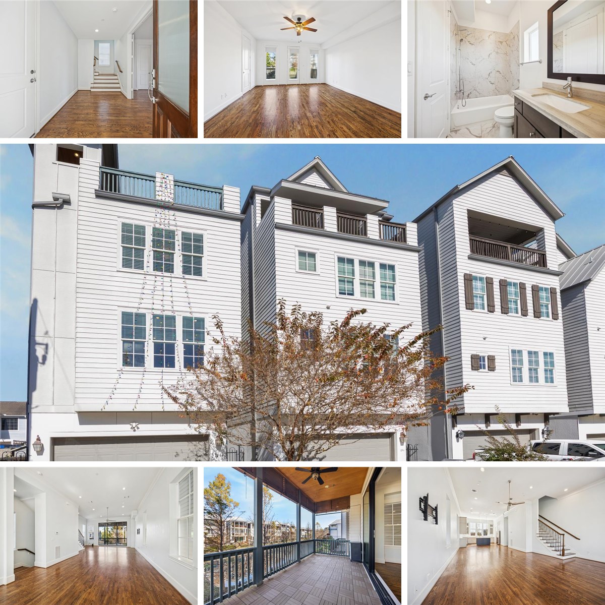 ***Imagine waking up in your private, energy-generating sanctuary in the Heights.*** This one-of-a-kind waterfront home invites nature in. Sip coffee on the second-floor balcony, listening to the fountain, the heart of the home just inside. Sunlight spills onto hardwood floors and 12' ceilings, flowing through the open kitchen and family room. Up on the third floor, your primary suite awaits with two generous walk-in closets. The top floor is a show stopper: a flexible space opening to two separate balconies. Use this space as an entertainment room, study or guest area.Balconies include one covered, overlooks the tranquil lake; the other faces South, offering a downtown skyline view, perfect for catching fireworks or rays. Your sustainable life awaits: solar panels, whole-house generator, and a perfect location—minutes from 610 and I-10, and steps from the White Oak Bayou Trail." Optional placement to add an elevator if one is desired. View the 3D virtual tour link.