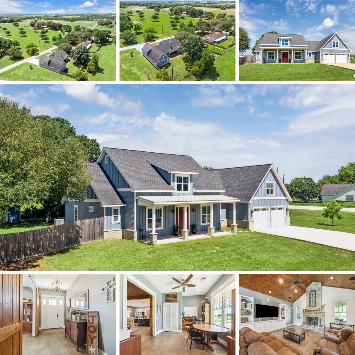 Located in the west end of Austin County, across from the Industry Community Park is a custom built 3250+sf house situated on half an acre. The thoughtfully designed 4-bedroom 3.5 bath house has everything you could dream of. Downstairs are all four bedrooms, an open concept kitchen/dining/living room with fireplace, a butler’s pantry, an office and more. The upstairs is home to a media/flex space with a wet room waiting for your final touches. This house has an abundance of storage and a large, floored attic space. The back covered porch has a fireplace and is ideal for entertaining and enjoying the peace of the country. To round out the amenities, this property has a 1 bed/1 bath bunkhouse perfect for guests, a concrete slab with electric and water hookups for your RV, and an attached oversized garage. Situated in the welcoming town of Industry and desirable Bellville ISD this house is waiting for a new family to call it HOME.