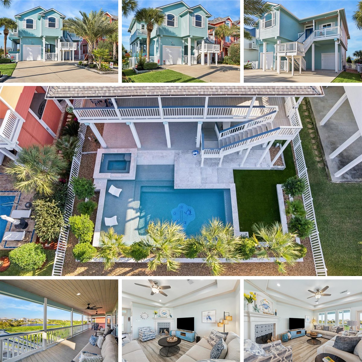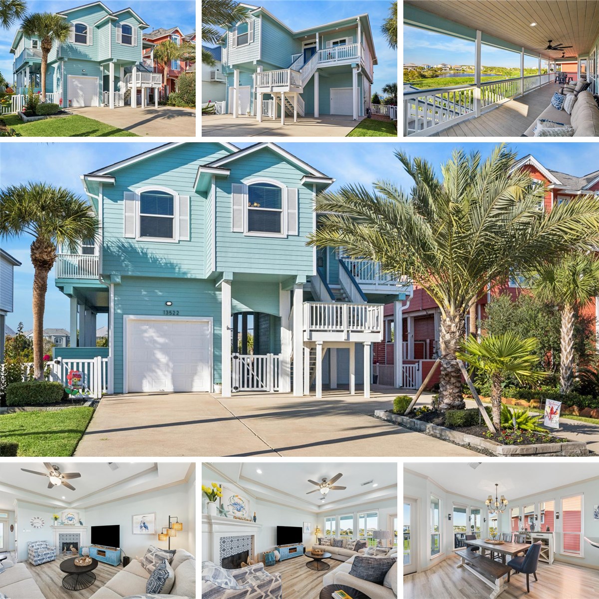 Lovely one story 3/2 located on Galveston's West End. Picture yourself relaxing on the covered back deck of this beauty taking in nature at its finest. The nature preserve and pond are well known to bird watchers from all over and it's in your backyard! Indoors you will enjoy the open floor plan of the main living area which also affords amazing views of the water and preserve! Living room features a recessed ceiling and beautifully tiled, gas fireplace. Kitchen is equipped with plenty of cabinets for storage and the countertops are covered in a beautiful black granite. Just off the foyer you will find a built-in office area, the perfect little hideaway to sit and work in private. Primary bedroom is large with deck access and more water views. An en suite with soaking tub and separate walk-in shower. On the ground level you will find a large, fenced backyard with additional living space for sitting or storing your favorite outdoor toys.