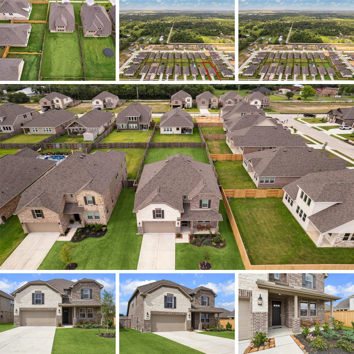 This “Omaha” floor plan has incredible curb appeal and features 4 bedrooms and 3.5 baths. The kitchen includes top of the line stainless steel smart appliances, elegant quartz countertops, and a farmhouse sink in the large island. Elegant formal dining area with custom built-ins. Primary suite downstairs with separate shower/bath and large walking closet. Secondary bedrooms upstairs as well as a guest suite/mother-in-law suite with an en suite full bath and large closet. The fully fenced back yard is one of the largest lots available in this neighborhood. Conveniently located near schools, shopping, and highways.