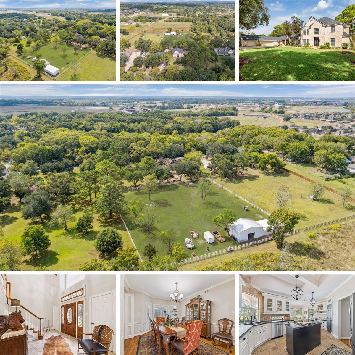 Beautifully maintained custom home on a sprawling acreage lot at 1540 Hastings Friendswood Rd in Pearland. This charming two-story brick home features a 3-car garage, long driveway, and one bedroom conveniently located on the first floor. Inside, enjoy an open layout with elegant finishes, crown molding, and large windows that fill the space with natural light. The kitchen offers granite countertops, stainless steel appliances, and a center island perfect for entertaining. The primary suite includes a luxurious bath with a soaking tub and separate shower. Outside, mature trees, lush landscaping, and a fenced area provide a peaceful country setting ideal for horses or recreation. A detached barn and storage building add versatility, while the garage apartment (1,027 sq. ft.), with a first-floor bedroom and private septic - offers income-producing potential or a guest retreat. Conveniently located near FM 518 and Hwy 35 - truly a rare find in Pearland!