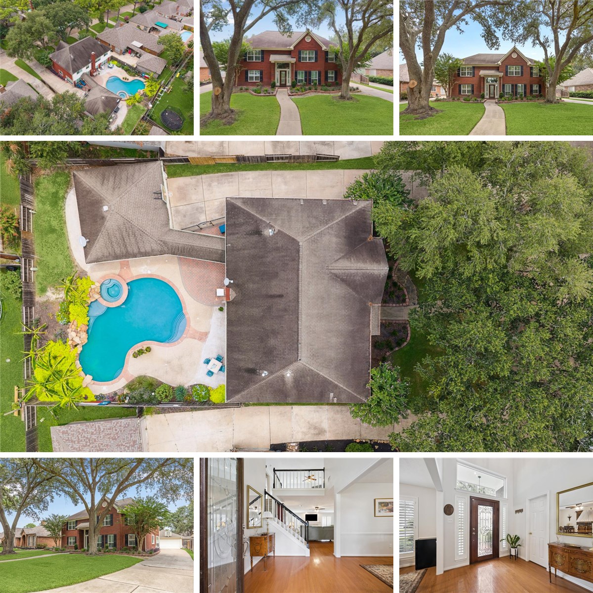 Step into this stunning, updated home where every detail has been thoughtfully curated. The sparkling pool—with a dramatic waterfall—has been updated and equipped with new systems, creating a true backyard oasis. Inside, rich hardwood floors, new plush carpet and plantation shutters set the tone for timeless style. The kitchen features a custom cabinet system, granite counters and SS appliances perfect for both everyday living and entertaining. The spacious family room and downstairs primary suite both offer serene views of the pool and lush landscaping. The primary bath offers double sinks, upgraded flooring, a hidden nook, and a luxurious seamless shower with six body sprayers. Upstairs find a large game room with custom cabinets plus three bedrooms – one with a new bath and another beautifully remodeled, plus a private home office with built-ins. This home blends comfort, style, and functionality – ready for move-in with a new HVAC system (2025), new windows (2024) and so much more.