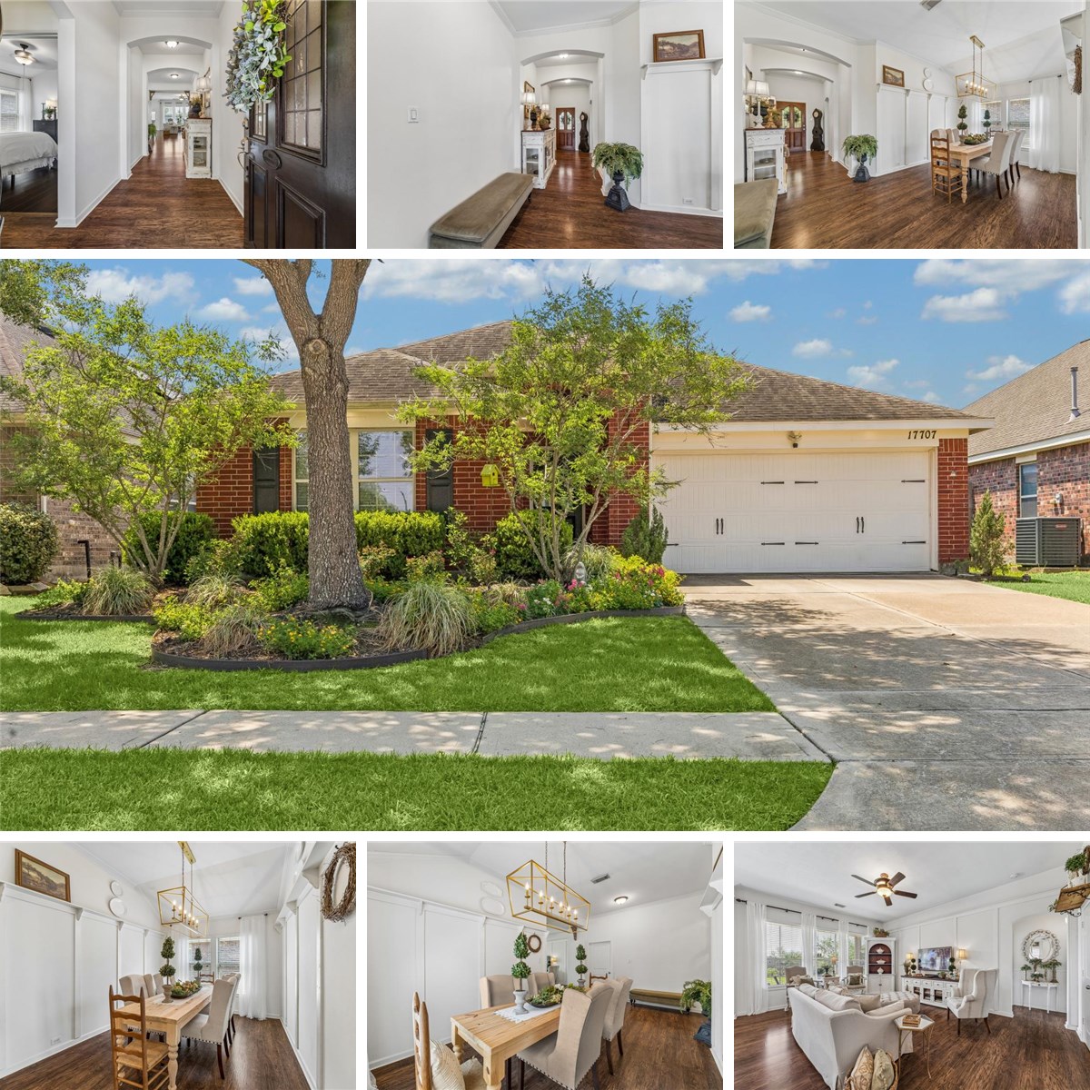 Cottage charm, thoughtful updates & beautiful outdoor living come together in this easy-to-love 1-story David Weekley. Thoughtfully updated interiors feature arched doorways, custom millwork, fresh neutral paint, stylish lighting & fans & wood-look laminate flooring. Open to the family room & casual dining, the island kitchen offers bar seating, crisp white cabinetry, quartz countertops, tile backsplash with under-cabinet lights, EnergyStar appliances (included) + a large pantry. Elegant formal dining room is perfect for entertaining. Primary suite offers a walk-in closet & a stunning ensuite with a free-standing tub, walk-in shower & updated vanity. Guest bedrooms feature large closets & easy access to a full bath. Screened patio, sprawling fenced yard with extensive landscaping & sprinklers make outdoor living easy to enjoy. EnergyStar home with low-E windows, high-efficiency HVAC, radiant attic barrier & more. Nearby park, playground & trails, just minutes from I-10 & the Energy Corridor!