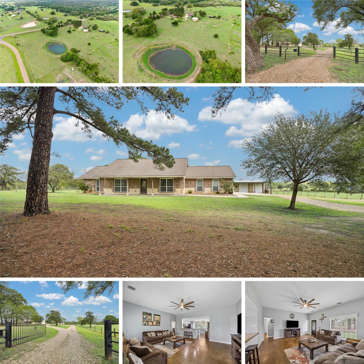 Welcome to your private country retreat! This beautifully maintained brick home offers 3 spacious bedrooms and 2 full bathrooms, featuring durable stained concrete flooring throughout for easy maintenance and modern appeal. Situated on 10 serene acres, the property provides plenty of space to relax, explore, and enjoy the outdoors. A picturesque pond—stocked with bass and perch—creates the perfect setting for peaceful afternoons of fishing or simply taking in the view. In addition to the 2-car garage, the property includes an impressive 1,200-square-foot shop, complete with an automatic door and a convenient half bath—ideal for projects, storage, or running a home-based business. Recent improvements include a new well house, pressure tank, and water softener. The automatic gated entrance adds both security and a welcoming touch of exclusivity. Whether you're looking for a quiet homestead, a recreational getaway, or a property with room to grow, this one checks all the boxes.