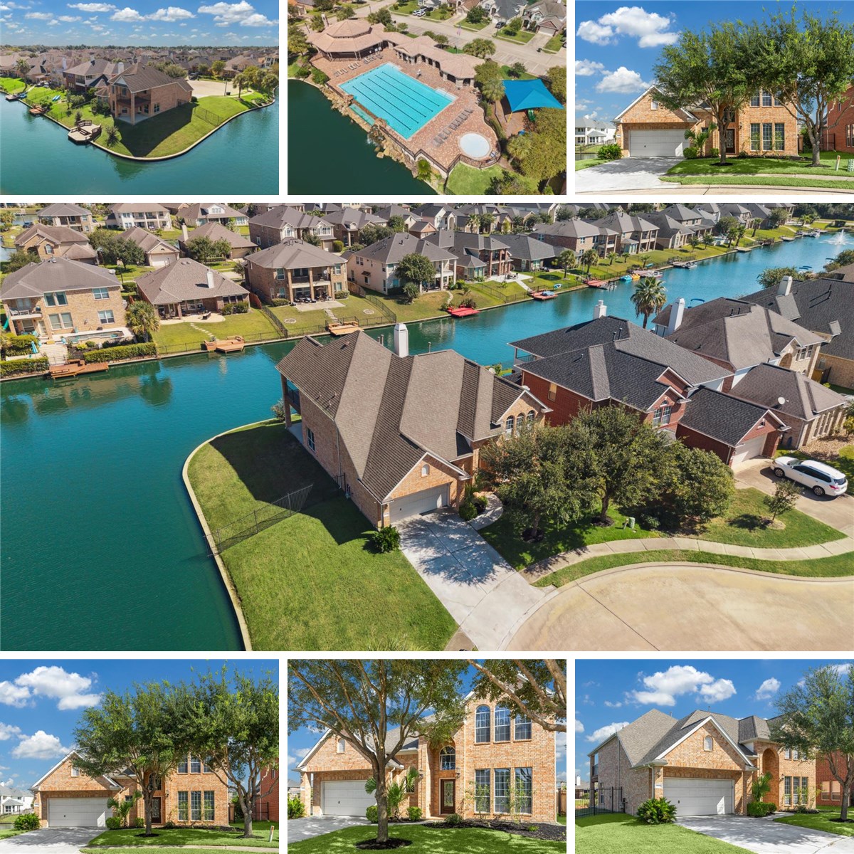 RARE PREMIUM CORNER LOT IN Cul-de-Sac. This rare lakefront lot has waterfront across the back and down the west side of the lot/home. This large 4-bed, 3.5-bath home sits on a quiet cul-de-sac and offers breathtaking water views from both sides of the property. With over 3,400 sq. ft. of living space, the open-concept layout features a large island kitchen with granite counters and 42-inch cabinets and overlooks the spacious living room and the oversized breakfast room with built-in desk. There is a large formal dining room to the front of the house that could be used as a study or second living area down. The grand two-story entry has a beautiful staircase that leads you to 3 secondary bedrooms up with ensuite baths, a large game room, and a covered balcony to enjoy the water views from upstairs outside. The first-floor primary suite includes a spa-like bath and large walk-in closet. A rare opportunity for waterfront living! A must see!