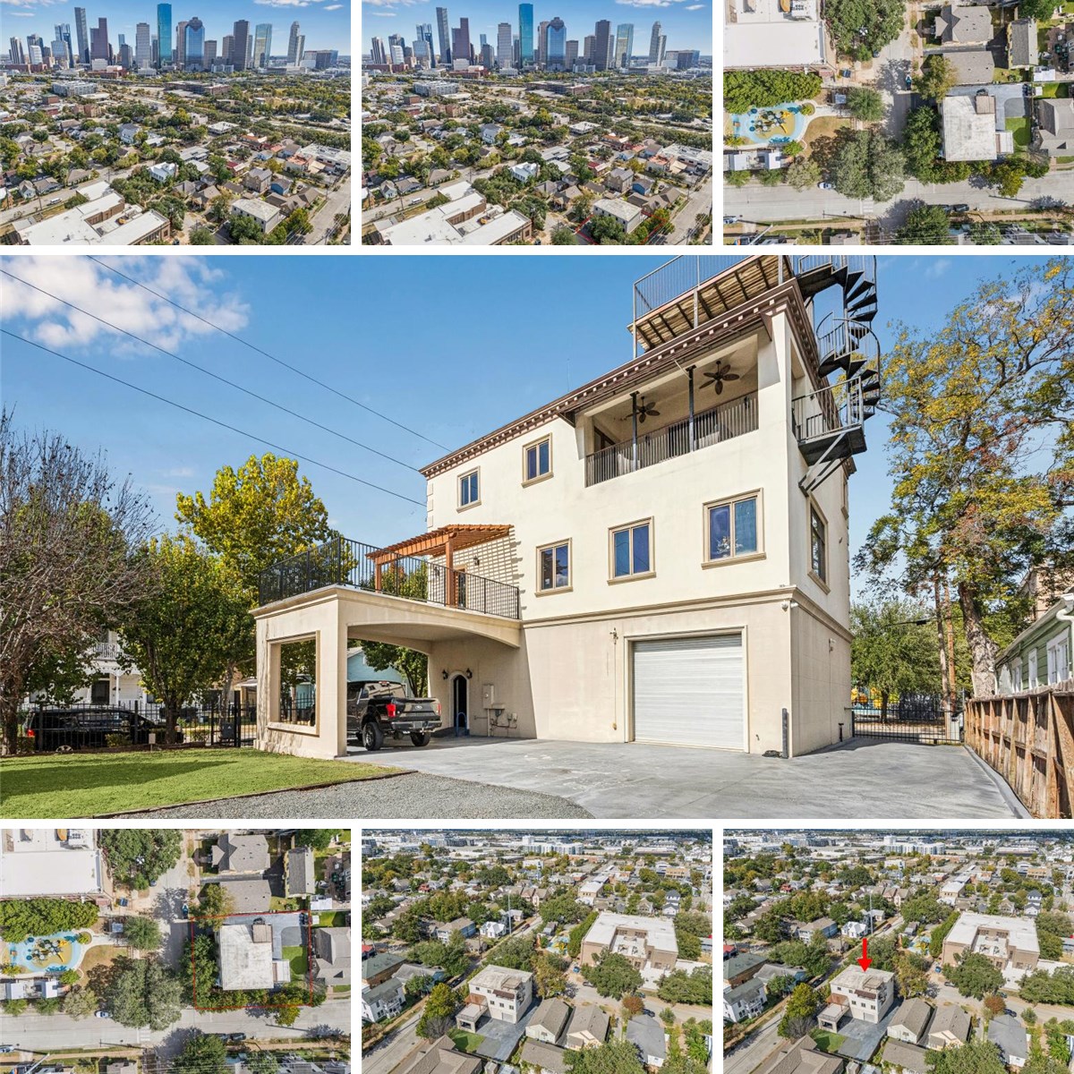 Unique opportunity in the Historic 6th Ward. This property was built in 2003 and has been used as a commercial/residential property since it was built. The first floor entry features a reception area and leads to an fully air conditioned 6 car garage with commercial overhead insulated door. The second floor has a large open family room, full kitchen, breakfast room and conference room as well as a powder bath which could easily be converted to a full bath. The the large balcony off the kitchen overlooks downtown and is above the two car carport. The third floor has up to three bedrooms and two baths as well as an additional bonus room. The Primary bedroom has a sitting area and bath with large jetted tub and separate shower. The third floor balcony is covered with loads of entertaining space and leads to a roof top deck. Situated on a corner lot and fully fenced this property is perfect as a live work environment.