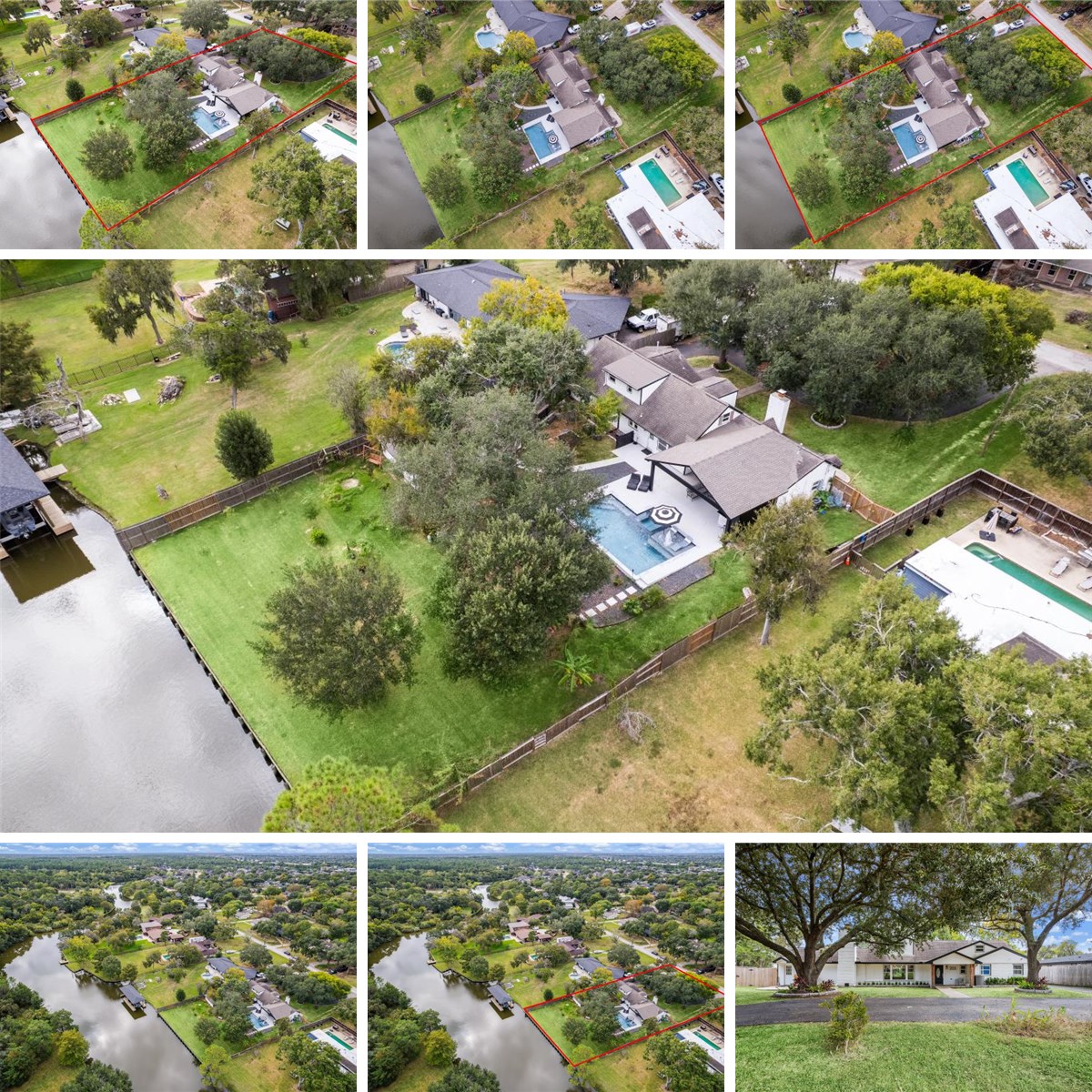 HONEY STOP THE CAR! Your Waterfront Sanctuary Awaits! Nestled on 3/4 acres in Bayou Bend, entering the circular drive You are welcomed by the majestic trees dripping with Spanish Moss framing this extensively upgraded 4 bedroom 3 bath home. Detached 2 car garage, boat is allowed! The 1st floor Primary bedroom with a spa 5 piece ensuite bath is a dream! Another bedroom down stairs is next to a full bath. There are two massive bedrooms upstairs that share an upgraded bathroom. The first floor continues with a high end kitchen opening to the ample breakfast room. All appliances are included! The dining room and den with a wood burning fireplace are expansive! But the WOW! is the outside entertainment area: towering covered patio leading to a heated salt water pool with hot tub and fountains. Then there is the rest of the large back yard leading to Dickinson Bayou, I will let the pictures do the talking! Midway between Houston & Galveston, easy access to I -45. Dickinson is the place to Be!