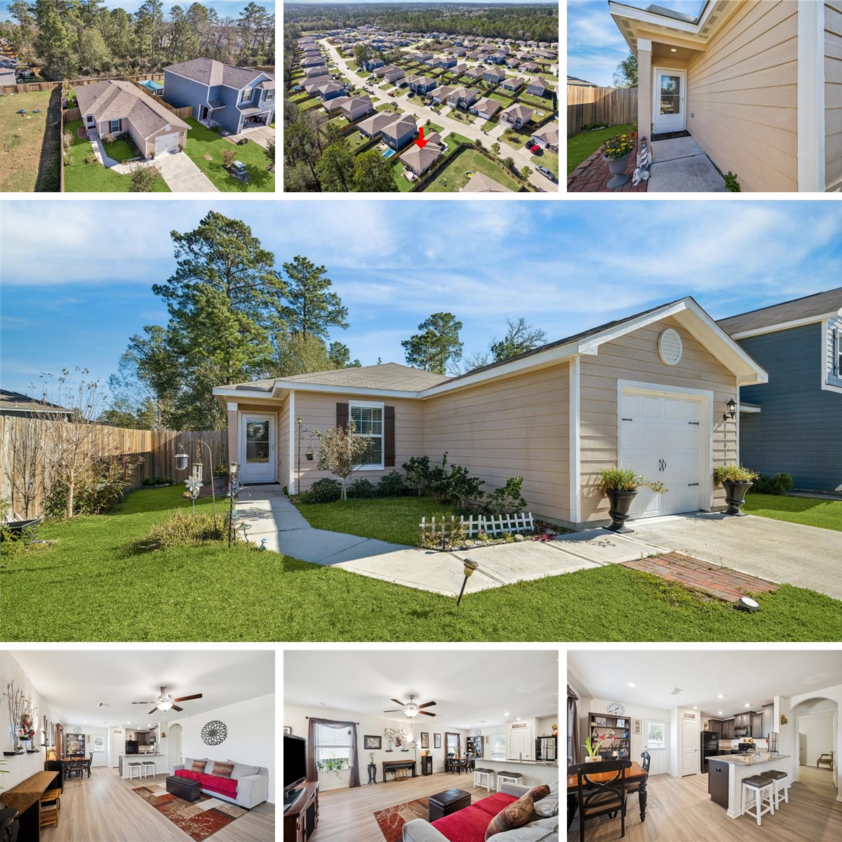 Welcome home to this beautiful 3-bedroom, 2-bath residence offering comfort, convenience, and serene outdoor living in a friendly community. USDA loan eligible, this home also features low taxes and NO MUD tax. The open floor plan is enhanced by stylish vinyl plank flooring, granite countertops, ceiling fans, and two walk-in closets, along with insulated retractable screen storm doors. An extended garage and extended driveway provide ample parking and storage. The private backyard retreat showcases fruit trees, herbs, and flowering perennials, with the property backing to trees for a natural buffer and added privacy. Enjoy nearby community amenities including a park, splash pad, and gazebo, perfect for gatherings and family fun.
