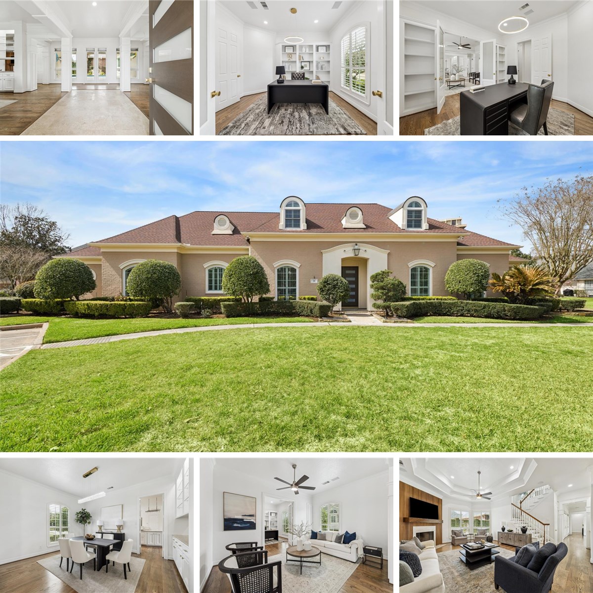 CUSTOM ONE AND HALF-STORY PATIO HOME NESTLED WITHIN A GATED COMMUNITY & UPGRADED WITH UNRIVALED FINE FINISHES! Real wood flooring, recently sanded and finished with new stain. New interior paint, custom fireplace, Viking SS appliances, upstairs game room, two offices, and new carpet. Incredibly private back yard with recently re-plastered pool. Double paned windows. New quartz countertops in the upstairs bathrooms. Ensuite baths for all bedrooms. Amazing architectural features throughout this one of a kind home. HOA fees include lawn care(except flower beds)! WOW