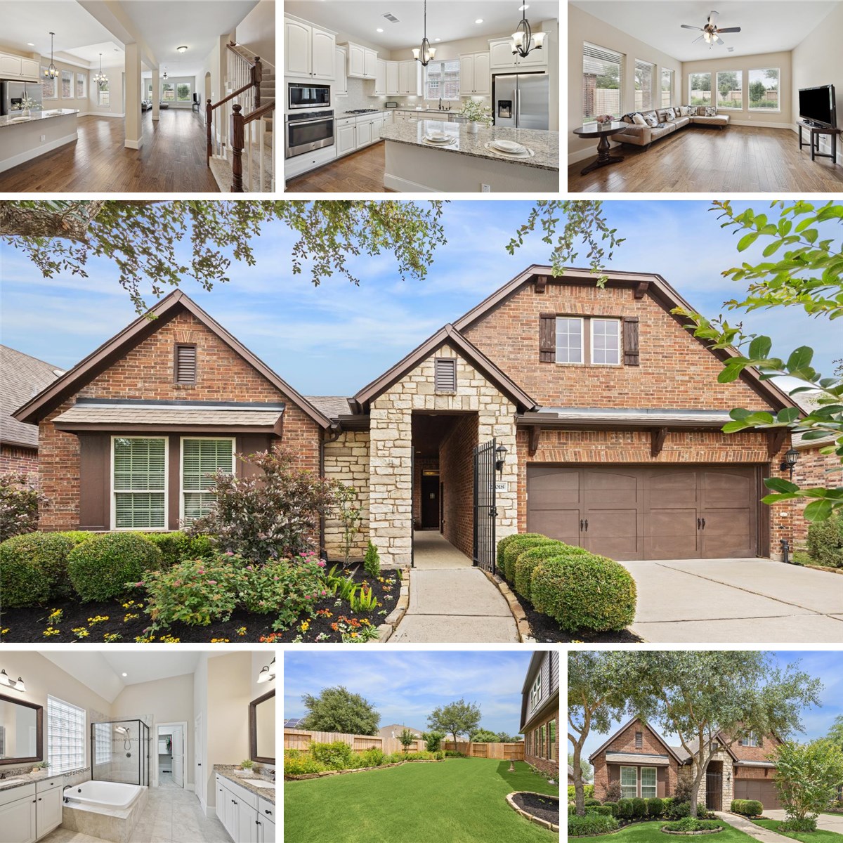 Fabulous 4-bed, 4-bath 1.5 story, courtyard style home in the Ashfield Gardens community of Cinco Ranch. A private gate leads to the courtyard entry and separate guest suite with a bedroom and full bath—ideal for long-term guests, "mother-in-law suite" or home office. Inside the main home, enjoy rich wood floors, a spacious living area with backyard views, and a kitchen featuring 42" wood cabinets, granite countertops, stainless steel appliances and a large island opening up to the dining area. The primary suite overlooks the backyard with an en-suite bathroom with separate large soaking tub and shower, dual sinks, granite counters, and a large walk-in closet. A secondary bedroom and full bath are on the main floor, while upstairs features a versatile loft/bedroom with its own bath. Enjoy Cinco Ranch amenities plus Ashfield Gardens' private clubhouse and gym.