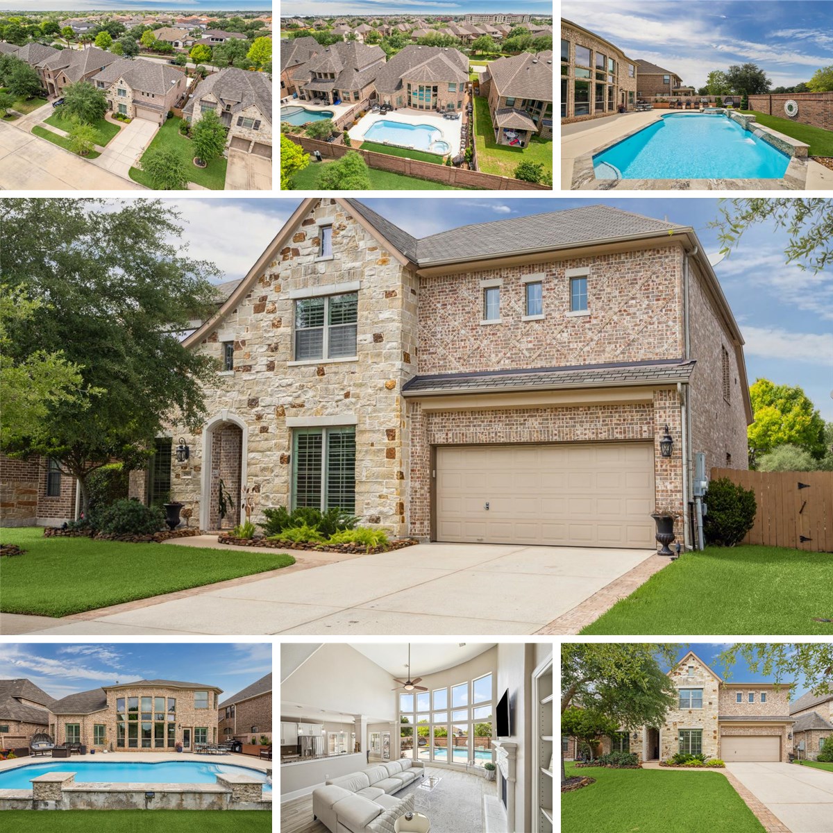 This stunning home is sure to impress with its open concept, elegant finishes, and many upgrades. The covered entryway opens into a dramatic double-story entry, setting the tone for the spacious and thoughtfully designed interior. The kitchen is a true centerpiece, featuring a large granite island, stainless appliances, and breakfast area, perfect for entertaining guests. The open living area is filled with natural light, thanks to floor-to-ceiling windows that overlook a backyard oasis, complete with a saltwater pool/hot tub, all with no rear neighbors. The primary retreat offers a serene escape, with attached en-suite bathroom featuring a jetted tub, separate shower, separate vanities, and a large walk-in closet. An upstairs game room has wet bar ready niche and a dedicated media room, ideal for family fun and movie nights. Additional features include home office, formal dining room, dry bar, plantation shutters, accented iron door storage. Don’t miss this exceptional home.
