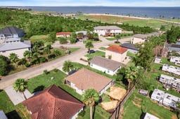 Step into coastal luxury with this Mediterranean bungalow. The backyard is a tropical retreat featuring a custom Palapa, fully equipped Tiki Bar, and relaxing hot tub. Inside, the kitchen dazzles with stainless steel appliances, granite countertops, and custom cabinetry, with elegant slate flooring flows throughout the home for a seamless feel. Your primary suite is a sanctuary, with a spa-inspired bath showcasing travertine finishes, a separate soaking tub, and a spacious walk-in shower. French doors lead from the bedroom to a cozy screened-in porch. Additional highlights include a refrigerator, washer, and dryer — all included — and a prime location just minutes from Pier 6, Topwater Grill, and Gilhooley’s. With Spillway Park and multiple boat launches nearby. Don’t miss your chance to own this slice of coastal luxury