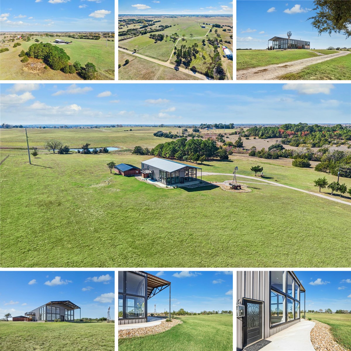 Experience luxury living, a weekend retreat, or a potential event venue at 3561 Post Oak Point Road. This newly built (July 2024) 4,500 sq ft custom barndominium sits on 25.623 unrestricted acres with stunning rolling-hill views. Inside, enjoy 34 oversized tinted windows, 20' ceilings, a sleek fireplace, and a custom bar perfect for entertaining. The home offers 5 bedrooms, including an impressive 1,200+ sq ft primary suite with a private balcony and spa-like bath. Outdoor features include an oversized hot tub with waterfall and fire pit, mature pines, rock landscaping, and a walking trail. A 30' x 50' building provides a blank space for your hobbies. There are two working waters on the property. Take in breathtaking, wide-open views by day and stunning stargazing by night. With an ag exemption and ample versatility, this property is perfect for personal enjoyment, investment, or events.