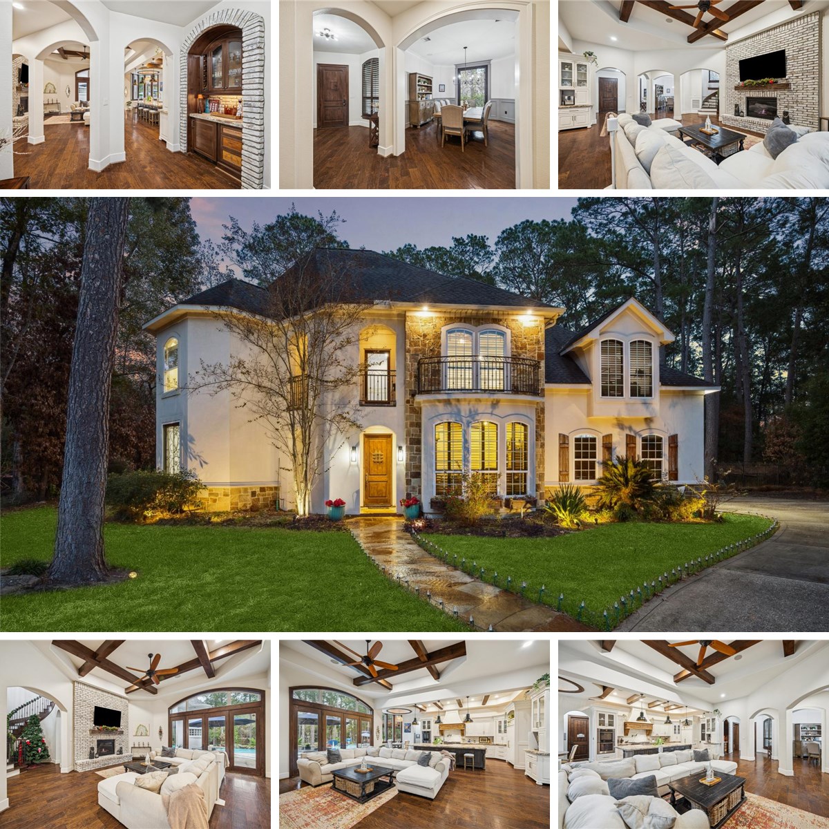 Stunning custom home tucked away on a quiet cul-de-sac in a the beautiful Benders Landing community. This residence blends luxury and comfort with rich wood flooring, exposed beams, custom millwork, and plantation shutters throughout. The chef’s kitchen features a large island, granite countertops, custom cabinetry, and premium appliances—perfect for entertaining. Spacious living areas include a dramatic stone fireplace and a dedicated home theater. The primary suite offers a spa-like bath with a copper soaking tub and custom walk-in closet. Step outside to your private backyard retreat featuring a resort-style pool, covered patio, and outdoor kitchen ideal for year-round enjoyment. Thoughtfully designed with exceptional craftsmanship, this home offers privacy, elegance, and incredible indoor-outdoor living.