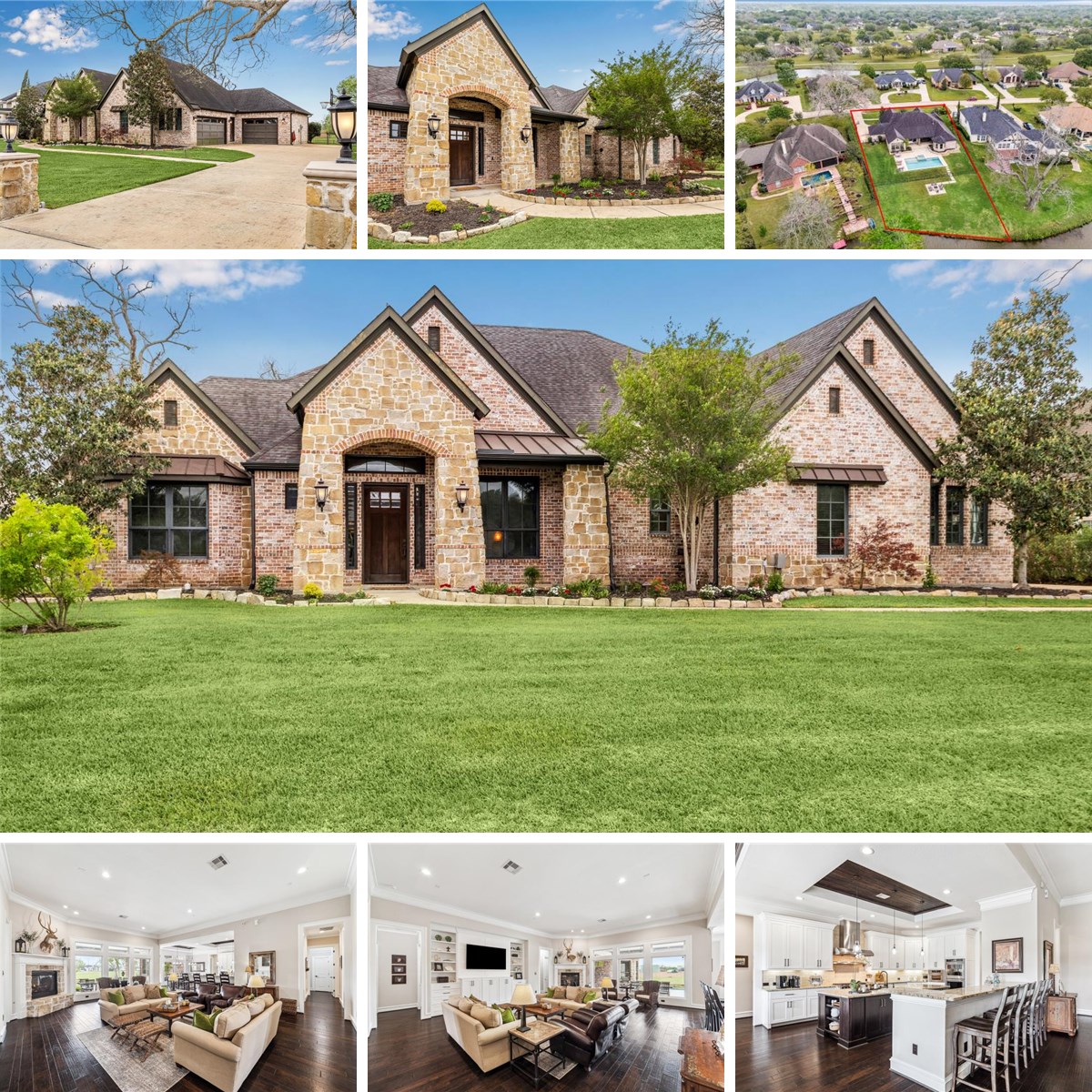 Welcome to your dream retreat in the prestigious gated golf course community of Weston Lakes. Perfectly positioned on a serene water lot, this stunning one-story custom home blends elegance, comfort, and functionality in every square foot. Step inside to an expansive open concept living area designed for entertaining and everyday luxury. The heart of the home is the chef’s kitchen, featuring an oversized island, high-end appliances, a built-in refrigerator, and abundant custom cabinetry—truly a dream for any home cook or host. Designed with intention, this home offers 3 spacious bedrooms, each with its own en-suite bathroom for ultimate privacy and convenience. You’ll love the dedicated home office PLUS a second flex room perfect for a hobby studio or second office. The game room is complete with built-ins and its very own bar—perfect for game nights or movie marathons. The resort-style backyard features a sparkling pool and spa, tranquil water views, and a cozy outdoor gas fireplace.