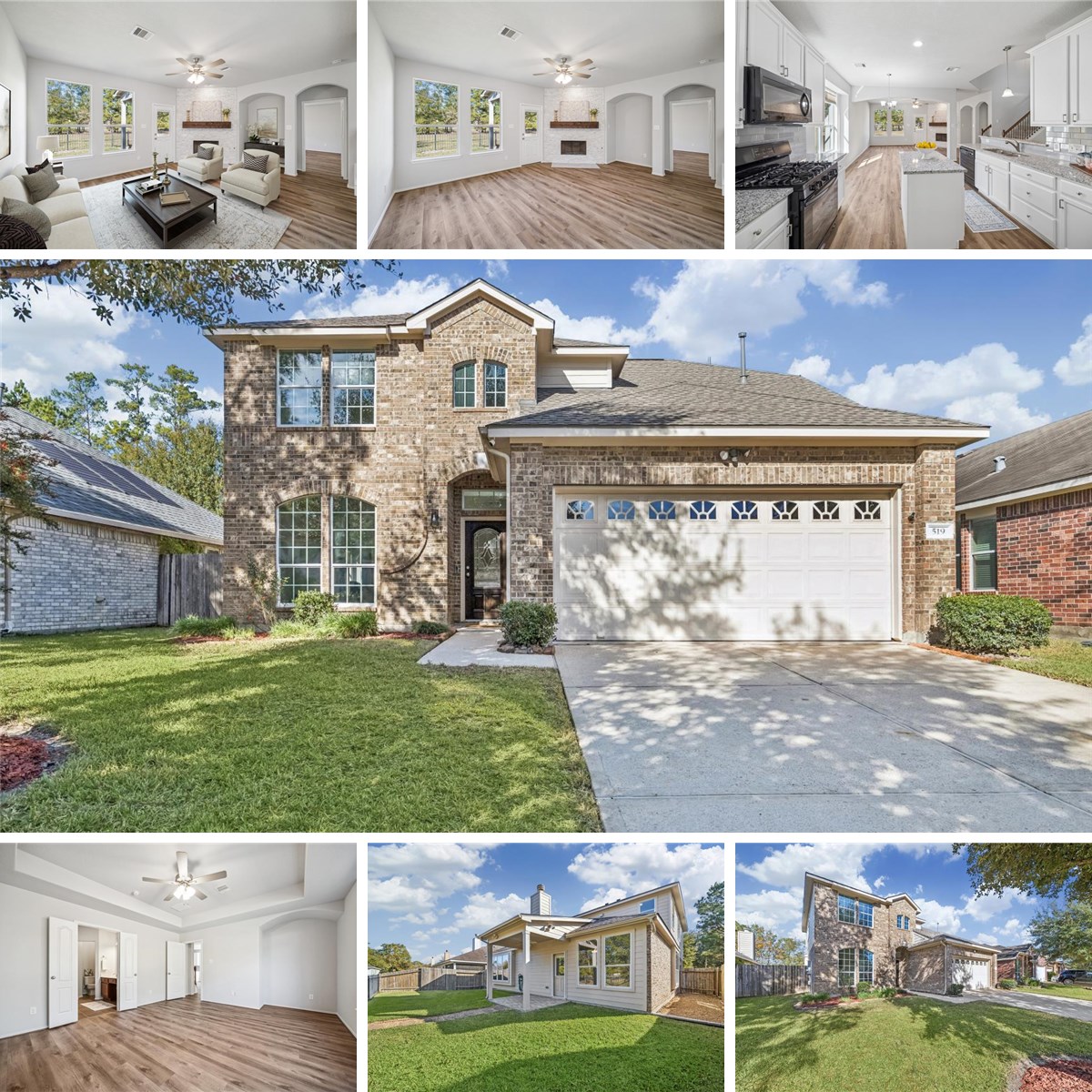 NEWLY REMODELED two-story home overlooking Browns Lake in the Lakewood Cove subdivision in Kingwood. This home has been beautifully updated with all new neutral paint throughout, wood-look laminate flooring downstairs, and new carpet upstairs! The kitchen features new granite countertops, and a coordinating tile backsplash. The living room has a stunning new stacked stone fireplace with a cedar beam mantel. The ROOF is NEW (Dec. 2025), and the water heater was replaced in 2019. Enjoy the low maintenance back yard with a covered patio that backs up to the community pond for added privacy and viewing enjoyment! Residents also have access to a shaded playground at the end of the street. The garage is an oversized 2 car garage with an epoxy coated floor, work sink, and room for a small workshop! This home is less than a 5 minute drive to highway 59! WASHER, DRYER, and REFRIGERATOR are included with the home! This home has too many upgrades to list! A MUST SEE HOME!