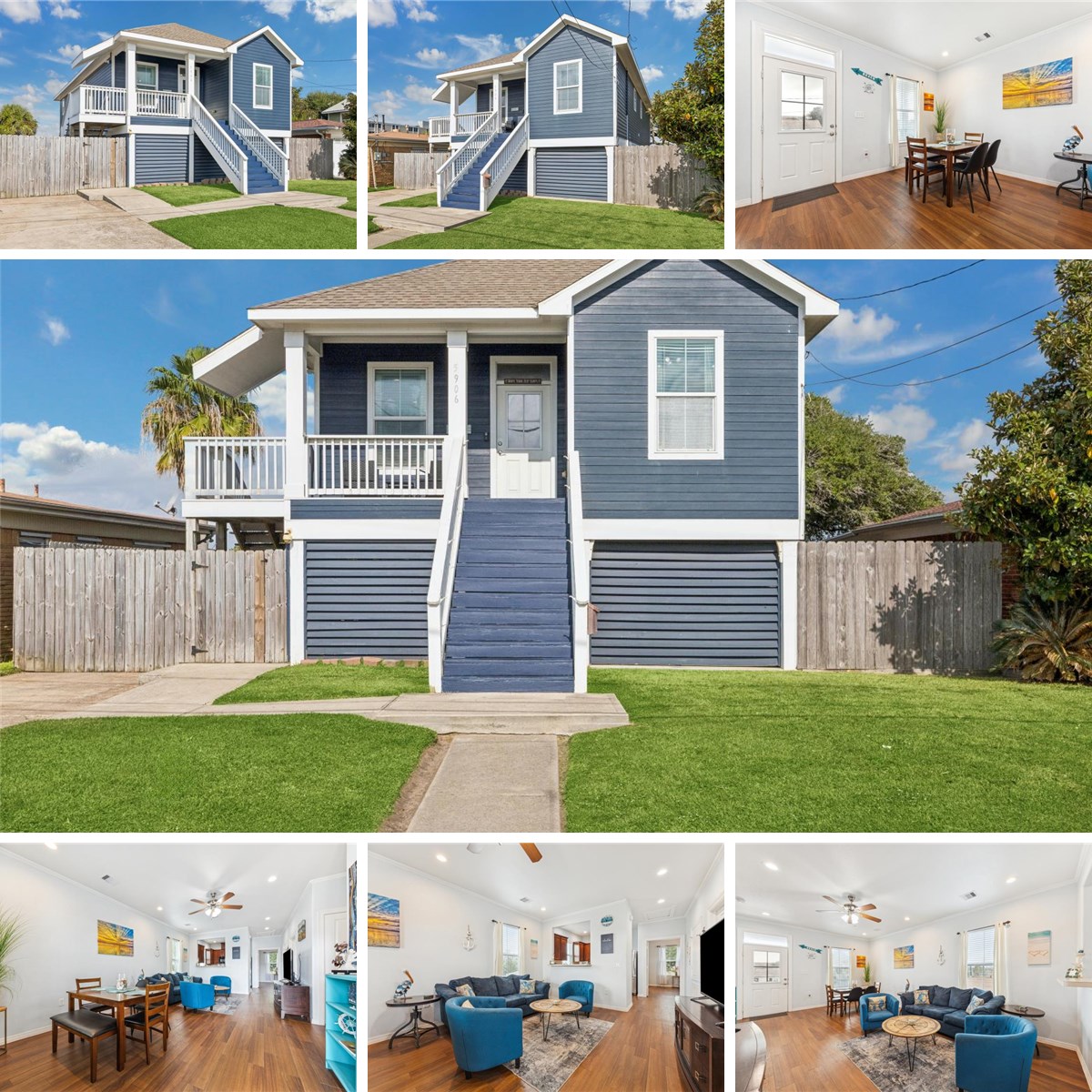 This beautiful home is located just a short five-minute walk to the beach. As you walk up the stairs, you'll discover an open layout featuring a spacious kitchen that seamlessly opens up to the family/dining area. The home offers a practical split floorplan with 2 bedrooms and 2 full bathrooms upstairs, providing privacy and comfort. An additional bedroom and half bathroom are located downstairs, complete with a minisplit AC/heat system for year-round comfort. Enjoy a huge covered patio area downstairs, perfect for entertaining or hosting large family gatherings. The fenced-in backyard provides a secure and private space for children and pets to play. Currently utilized as an Airbnb, property will be sold with all furnishings included, making it ready for immediate move-in or continued rental use. The location is unbeatable, being close to local restaurants and activities. This is a must-see property! Schedule your appointment to see this today!