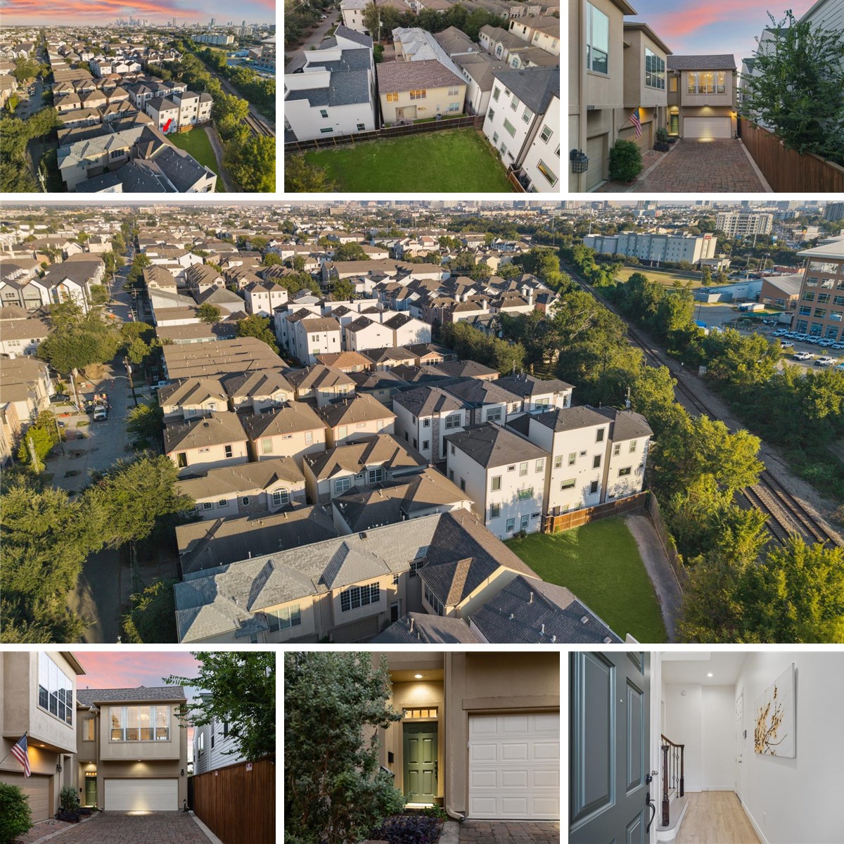 Just north of Memorial Park, this 2 story updated townhome tells a story of timeless design and effortless living. Step inside to find wide-plank flooring (no carpet!), 8-ft doors, a serene first-floor primary suite and spa-like bath with natural stone tile, frameless glass shower, gold fixtures and spacious walk-in closet. Upstairs 11-ft ceilings frame a bright open-concept living area where dining, lounging and cooking flow together seamlessly. The kitchen shines with granite counters, stainless appliances, energy-efficient recessed LED lighting (2025) and soft taupe cabinetry. Fresh paint, upgraded chandeliers and refined finishes elevate every detail. New roof (2023), AC condenser (2022), water heater (2016) add peace of mind, while the cobblestone driveway exudes style and rare 50'×10' backyard invites relaxation or entertaining. Includes front-load washer and dryer, stainless refrigerator, oversized garage and unbeatable access to trails, shopping and dining. Your perfect Inner Loop retreat.
