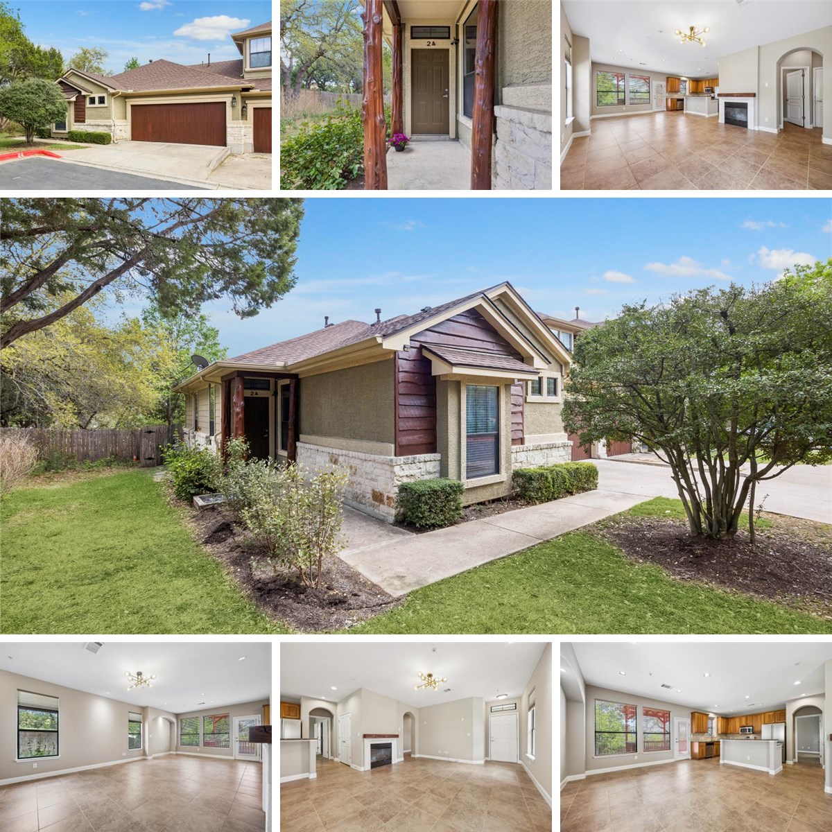 Behind the gates of The Gardens at Covered Bridge, this rare single-story end unit condo offers a refreshing take on easy living with no stairs, no stress, just a beautifully designed home in an unbeatable location. With 2 bedrooms, 2 bathrooms, a versatile bonus/flex room, and 1,497 square feet, this inviting residence blends comfort, function, and charm just minutes from shopping, dining, the Galleria, and with the Oak Hill Parkway improvements, downtown Austin and beyond will be even more convenient. Inside, the thoughtfully designed open-concept floor plan creates a warm and welcoming feel, perfect for both everyday living and entertaining. The spacious living area invites you to relax by the fireplace, while the seamless flow into the kitchen and dining spaces makes the home feel connected and easy to enjoy. The kitchen is both stylish and practical, featuring granite countertops, stainless steel appliances, a large center island with seating, and abundant cabinetry. The primary suite is a peaceful retreat, complete with an ensuite bath featuring dual vanities, a soaking tub, and a separate glass-enclosed shower. The secondary bedroom is also generously sized, making it ideal for guests or everyday flexibility. One of the standout features of this home is the bonus room with a closet, offering endless possibilities as a home office, media room, reading nook, workout room, hobby space, or even an additional guest area. The attached 2-car garage provides ultimate convenience with easy no-step access in and out, and there are no upstairs neighbors to worry about. Enjoy full access to neighborhood amenities - the resort-style pool, dog park, and community green spaces - for just $620 a year through the Covered Bridge POA. Rarely does a home combine practicality, personality, privacy, and location so effortlessly.