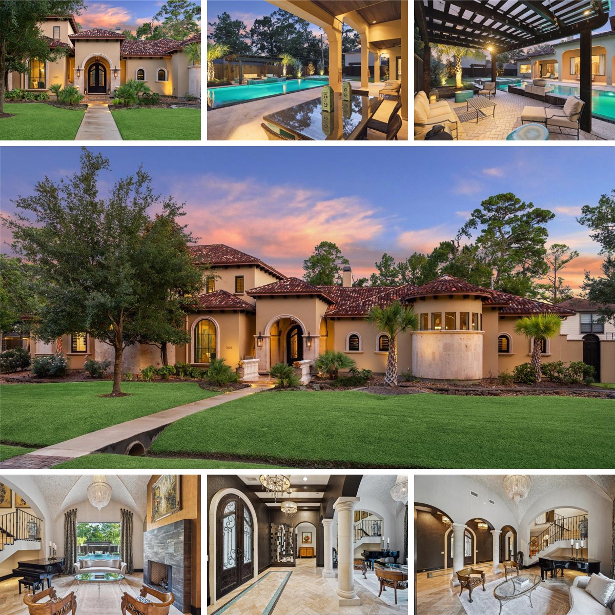 Resort Living on a large corner lot! Custom built. Golfer's paradise, Entertainers delight! Amazing back yard built around stunning vanishing edge Pool and Spa, Lanai, Summer Kitchen, Pizza Oven and 3 hole putting green! Beautiful Pool views through 1st floor Window Walls. Impressive Entry with stone columns and high ceiling open to Living Room with tiled, groin ceiling. Spacious Dining Room, Stately Study/Library with Pool view. Terrific Family Rm open to large Game Room & Kitchen with bountiful counters and cabinets, walk in pantry, wet bar and beautiful side Entry. Impressive Owners' Suite DOWN with Sitting Area, window wall, pool access and double door entry to amazing bath featuring tiled barrel ceiling, tub, F/P, oversized 2 person shower with natural light and separate Closets, approximately 22x11 & 9x9. Additional 2nd En Suite bathroom DOWN! Well designed upstairs with En Suite BedRooms, Theater (now a golf simulator), Exercise Room, 2nd Game/TV Room, Study Alcove and Bar. Oversized 3 Car Garage, extra parking. Memorial HighSchool.