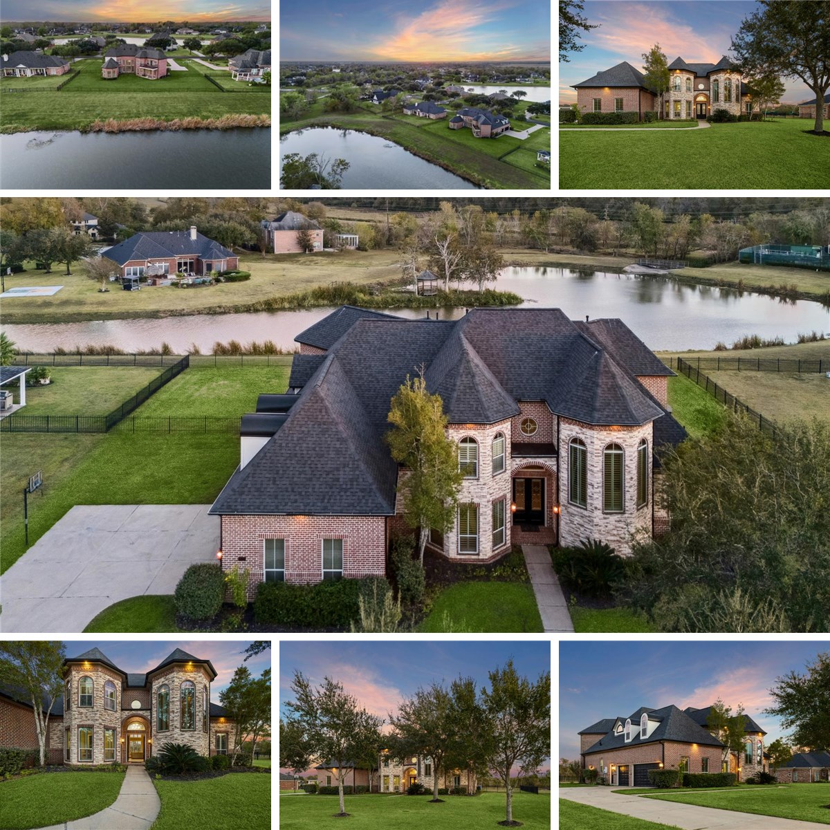Welcome home to LAKEFRONT LUXURY in the prestigious ROYAL LAKES ESTATES of Richmond. This elegant 5-BEDROOM, 4.5-BATH home spans 5,006 SQ FT on an oversized 0.62-ACRE lot and features a NEW ROOF 2025, NO BACK NEIGHBORS, and a VERY LOW 1.568% TAX RATE. A GOURMET KITCHEN—with GRANITE COUNTERTOPS, DOUBLE OVENS, and a BUTLER’S PANTRY—opens to the FAMILY ROOM with LAKE VIEWS AND FIREPLACE. A GRAND TWO-STORY FOYER with DUAL STAIRCASES leads to FORMAL LIVING AND DINING areas filled with natural light. The MAIN-FLOOR PRIMARY SUITE offers a BAY-WINDOW SITTING AREA, SPA-STYLE BATH, and HIS AND HER CLOSETS; upstairs features a private STUDY with BALCONY OVERLOOKING THE WATER and a spacious GAMEROOM. Outdoors, relax on a COVERED PATIO, FULLY-FENCED YARD, SPRINKLER SYSTEM, THREE-CAR GARAGE, and SCENIC WATERFRONT VIEWS—often with DEER at the shoreline. MINUTES FROM SUGAR LAND and zoned to A-RATED GEORGE RANCH HIGH SCHOOL, this home blends ELEGANCE, COMFORT AND LIFESTYLE.