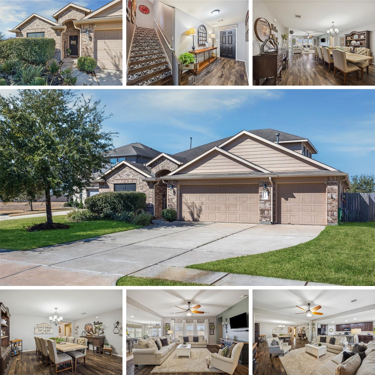 Welcome home to this exceptional 4 bedroom, 3.5 bath home with a 3-car garage, nestled on a quiet cul-de-sac in the gated community of Sterling Lakes at Iowa Colony. Designed for both everyday living and entertaining, the home features an open-concept kitchen with large island overlooking the family room, a formal dining area perfect for hosting family and friends and a large gameroom/flex space. It's the perfect split floor plan complete with a mother-in-law suite. The private primary suite offers a relaxing retreat with an en-suite bath, while the backyard provides added privacy with no back neighbors. Residents enjoy access to fantastic community amenities including a pool, splash pad, walking trails, and basketball court. Conveniently located with easy access to the Texas Medical Center and downtown Houston, this home perfectly blends location, comfort and functionality. REFRIGERATORS, WASHER/DRYER, PATIO FURNITURE STAYS!